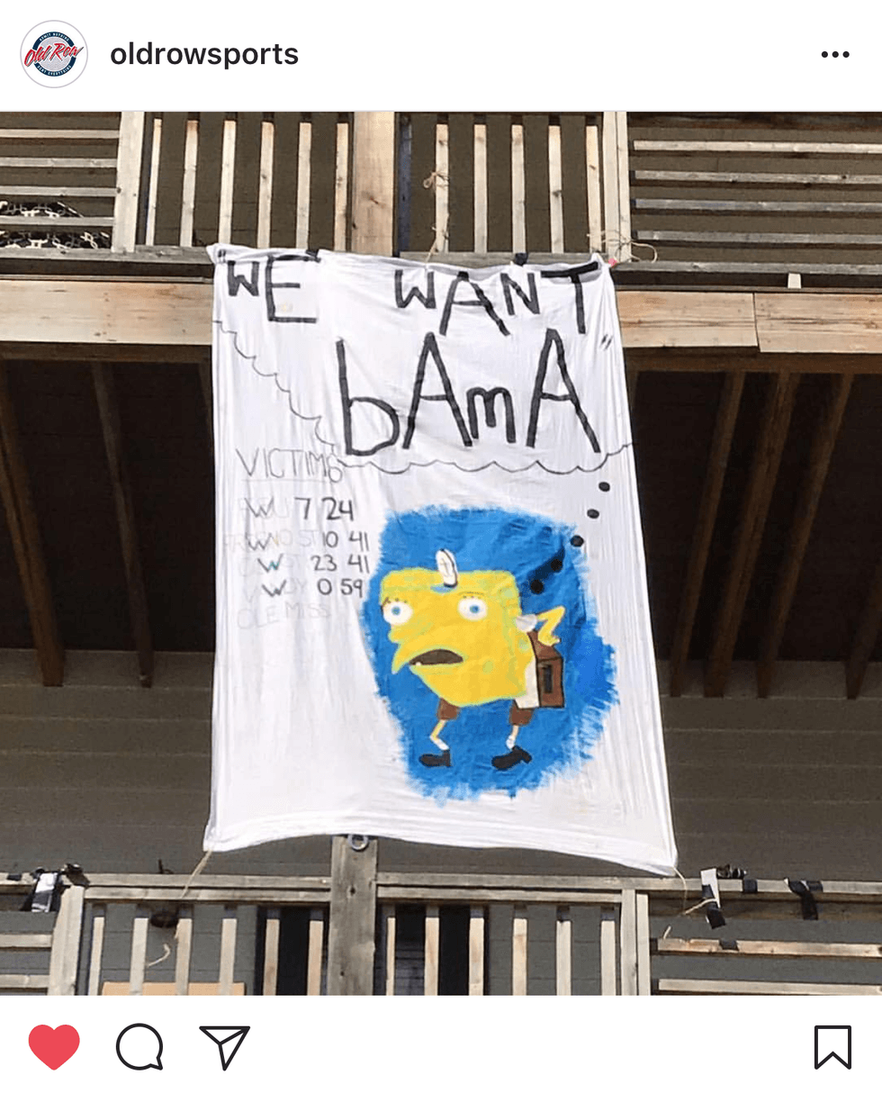 It's Ole Miss hate week here at The University Of Alabama and students are really getting into the spirit of things. In preparation for the 8 pm central time kickoff on this upcoming Saturday evening in Bryant-Denny, I thought it would be most appropriate to showcase some of this hating for college football fans across the nation to enjoy. Alabama fans, if you thought you couldn't possibly get more prideful about having the best team in the nation, keep reading. Ole Miss fans, turn away now, rough waters ahead.