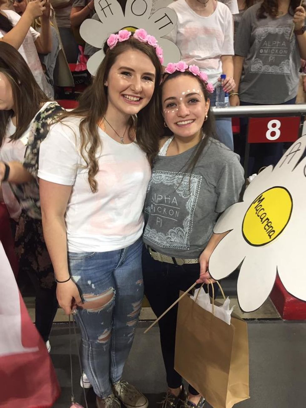 Thank you for being my first friend in our sorority and for making it feel like home so fast. I don't know what I would have done without you the first few weeks after bid day. Thank you for always being willing to take pictures with me everywhere we go (literally). I'm glad I have found someone who is equally as obsessed with getting a picture at every single social event attended. Going off of that, thank you for always joining me in the middle of the dance floor at every single social, bar, and party we go to. We may be making a fool out of ourselves, but at least we are doing it together.