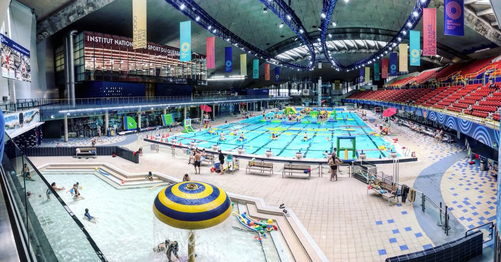 We went on a Sunday so it was kids day meaning the Olympic pool was transformed into this crazy play place for families and children with various floating obstacle courses. They also have adapted the floor of the pool so that half of the pools floor can move to various depth for kids day or normal everyday training.