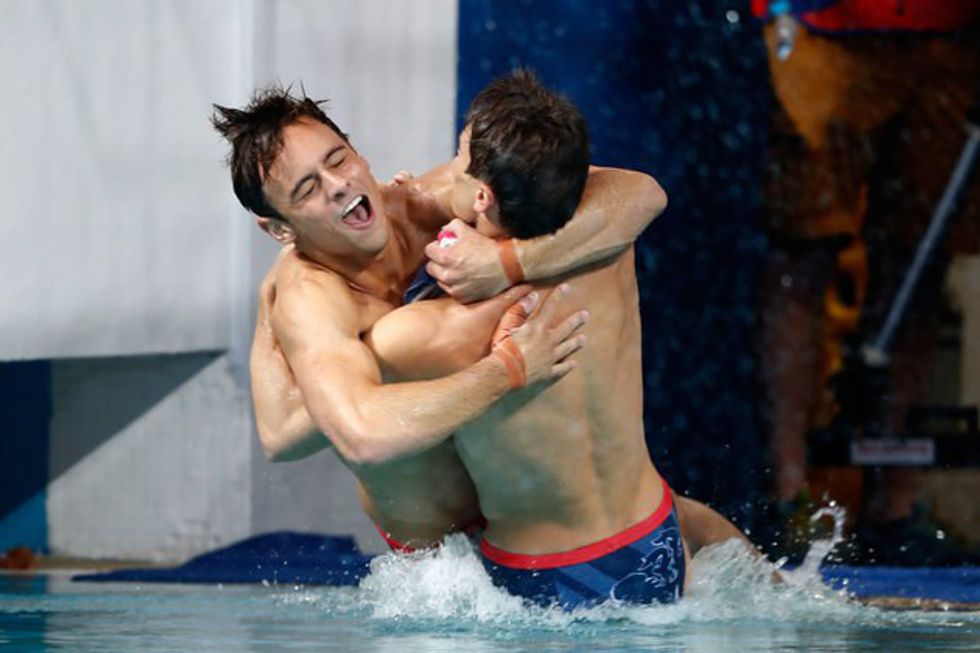 Britain’s Tom Daley and teammate after they won bronze in diving