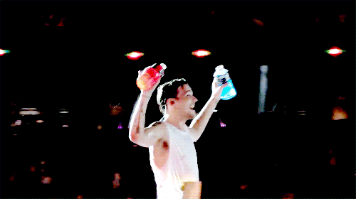 The water fight eventually turned into a Powerade fight, and the most famous image from the show is of Tomlinson and Payne dumping three bottles of Powerade on themselves.