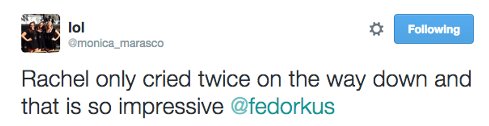 Soon, a pair of booties and tight skinny jeans made their way up the ramp backstage, and everyone completely lost it. Harry Styles was heading into position, quickly followed by Liam Payne (whom I totally did not burst into tears upon seeing), and the overhead lights went out before the other two could be spotted.