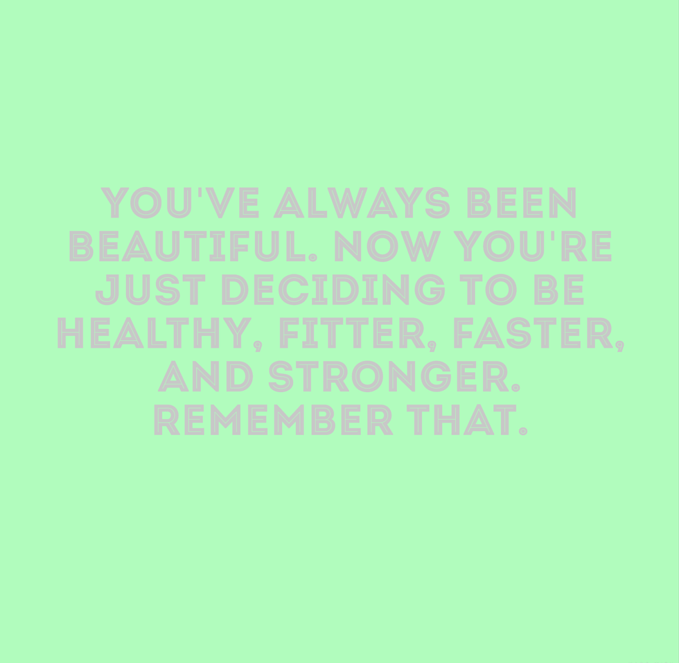 12. You've always been beautiful. Now you're just deciding to be healthy, fitter, faster, and stronger. Remember that.