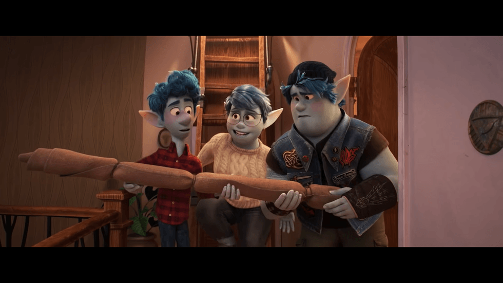 The world of 'Onward' is similar to the modern world we know, but populated by elves, goblins, unicorns, and other magical creatures. The story follows two elf brothers, the younger Ian (voiced by Tom Holland) and the older Barley (voiced by Chris Pratt). Ian is relatively shy and about to start a new year in high school, while Barley is taking a gap year to figure out his life and is obsessed with medieval role-playing games. On Ian's 16th birthday, his mother, Laurel (voiced by Julia Louis-Dreyfus) reveals that she has a present from the boys' father, who passed away when Barley was young.