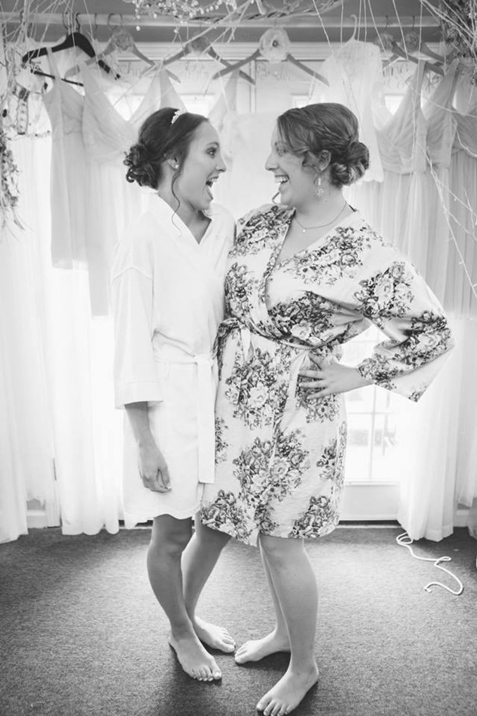 With all the beautiful decorations filling the venue, stress can be the main factor filling into the start of the ceremony. When the table arrangements get messed up or all the groomsmen are late, it's your job to reassure her that everything will be all right, even if you're freaking out just a bit as well. Jam to some music while getting ready, have a dance party, take goofy selfies -- your carefree spirit will ease the tension. Plus, the professional pictures always turn out best when they're the fun, candid ones.