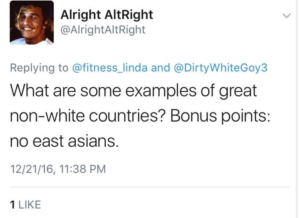 Actually, every aspect of your ideology would be a joke if it were not for the fact that ideologies like yours ignite genocides. Of course, when I say genocide I mean the real thing, not your make-believe “white genocide.” In your mind, diversity somehow equates to genocide. I would recommend taking a class on political violence or perhaps reading something besides obvious propaganda.