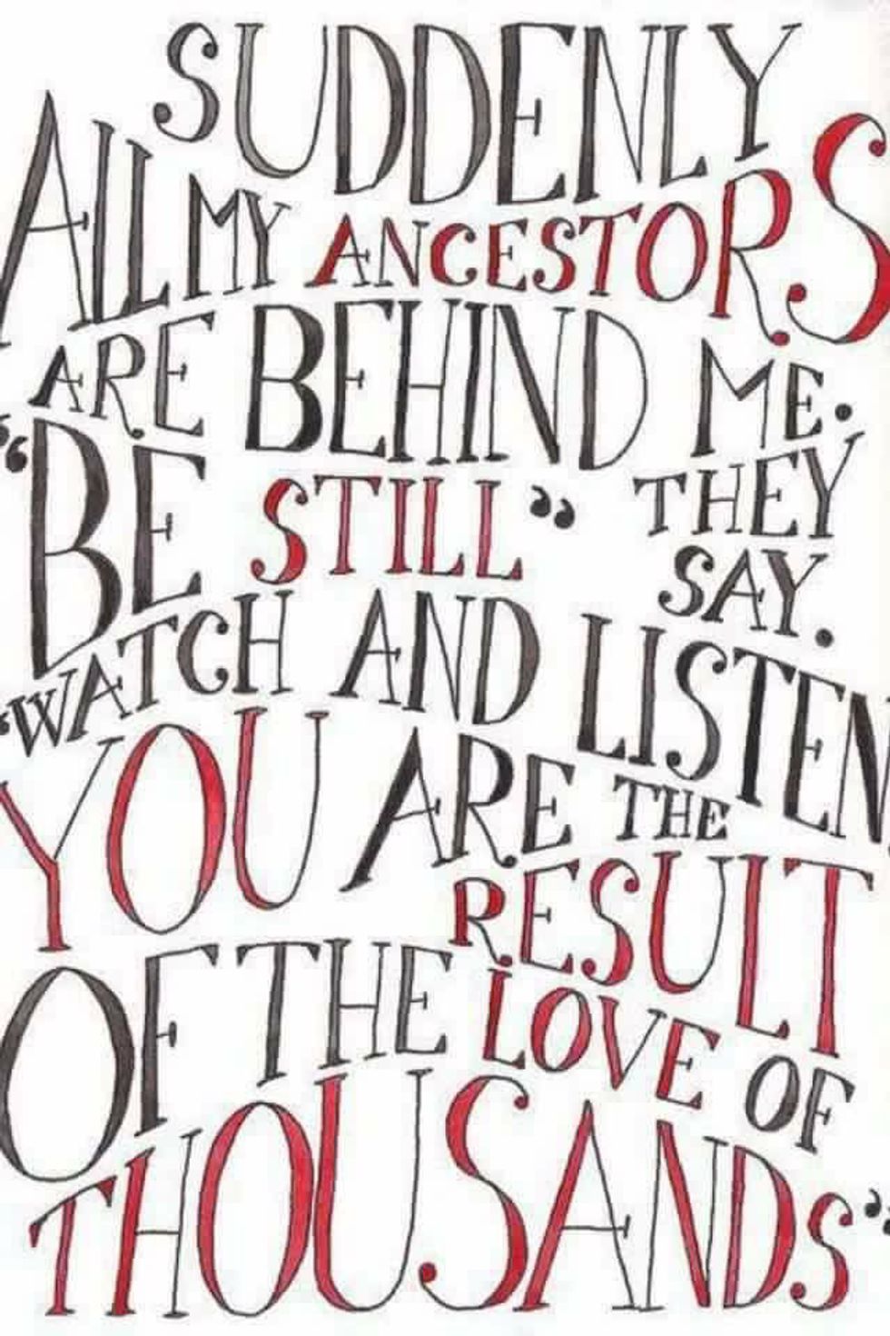 “Suddenly all my ancestors are behind me. ‘Be Still’ they say. ‘Watch and listen, you are the result of the love of thousands.’”