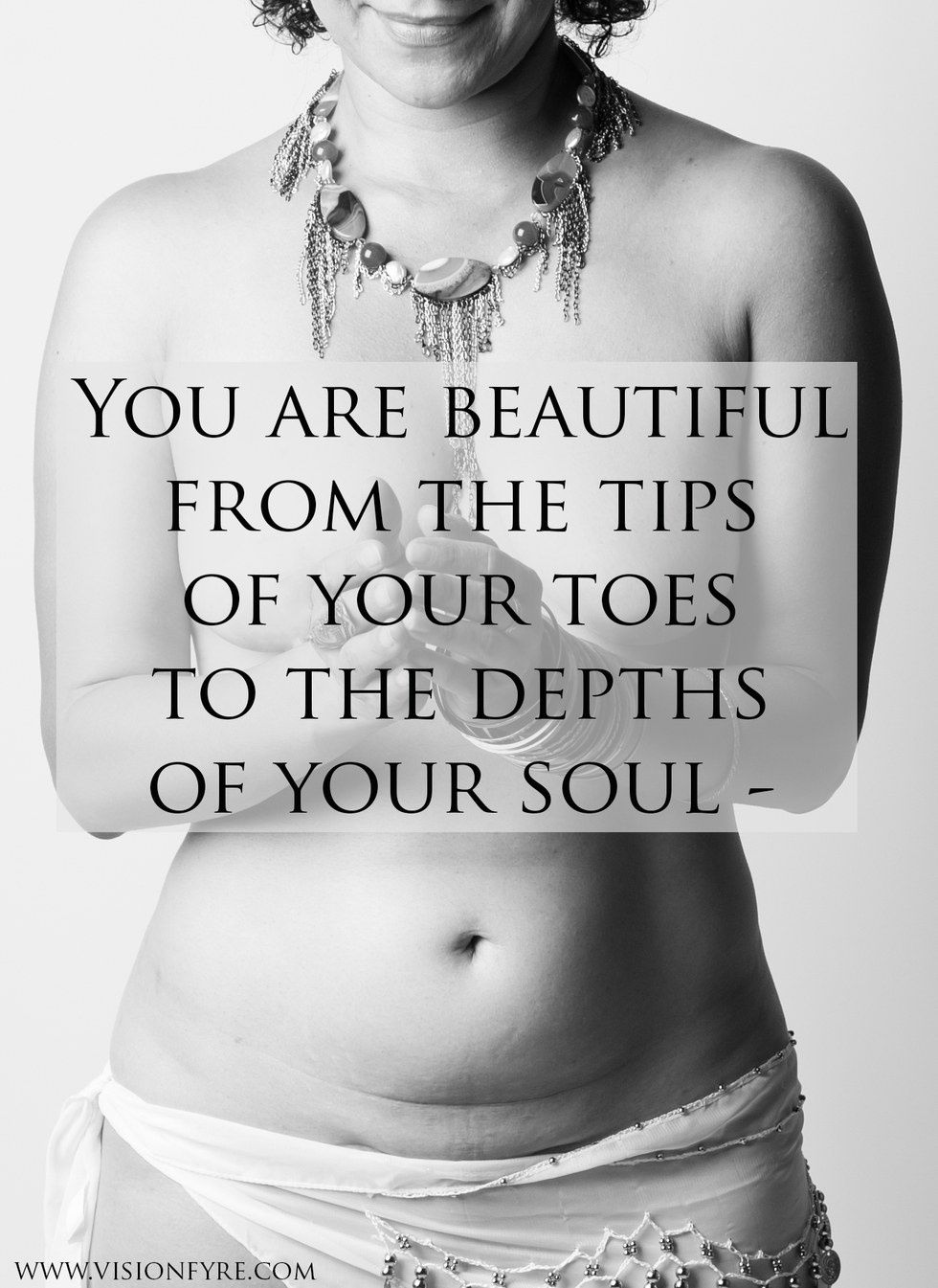 So, will you listen to my quivering voice as I pour out my love to you on paper? Will you forgive me? I've wasted far too many years wishing that you were different and it's gotten me nowhere. You were given to me. No, you were entrusted to me as an earthy vessel. I love you, dear body, I want you, dear body, and I accept you, dear body.