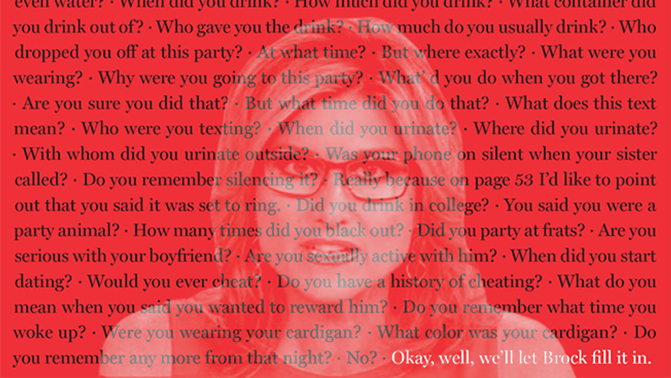 "Sometimes I think, if I hadn’t gone, then this never would’ve happened. But then I realized, it would have happened, just to somebody else. You were about to enter four years of access to drunk girls and parties, and if this is the foot you started off on, then it is right you did not continue." - Victim (source: https://www.buzzfeed.com/katiejmbaker/heres-the-po...)