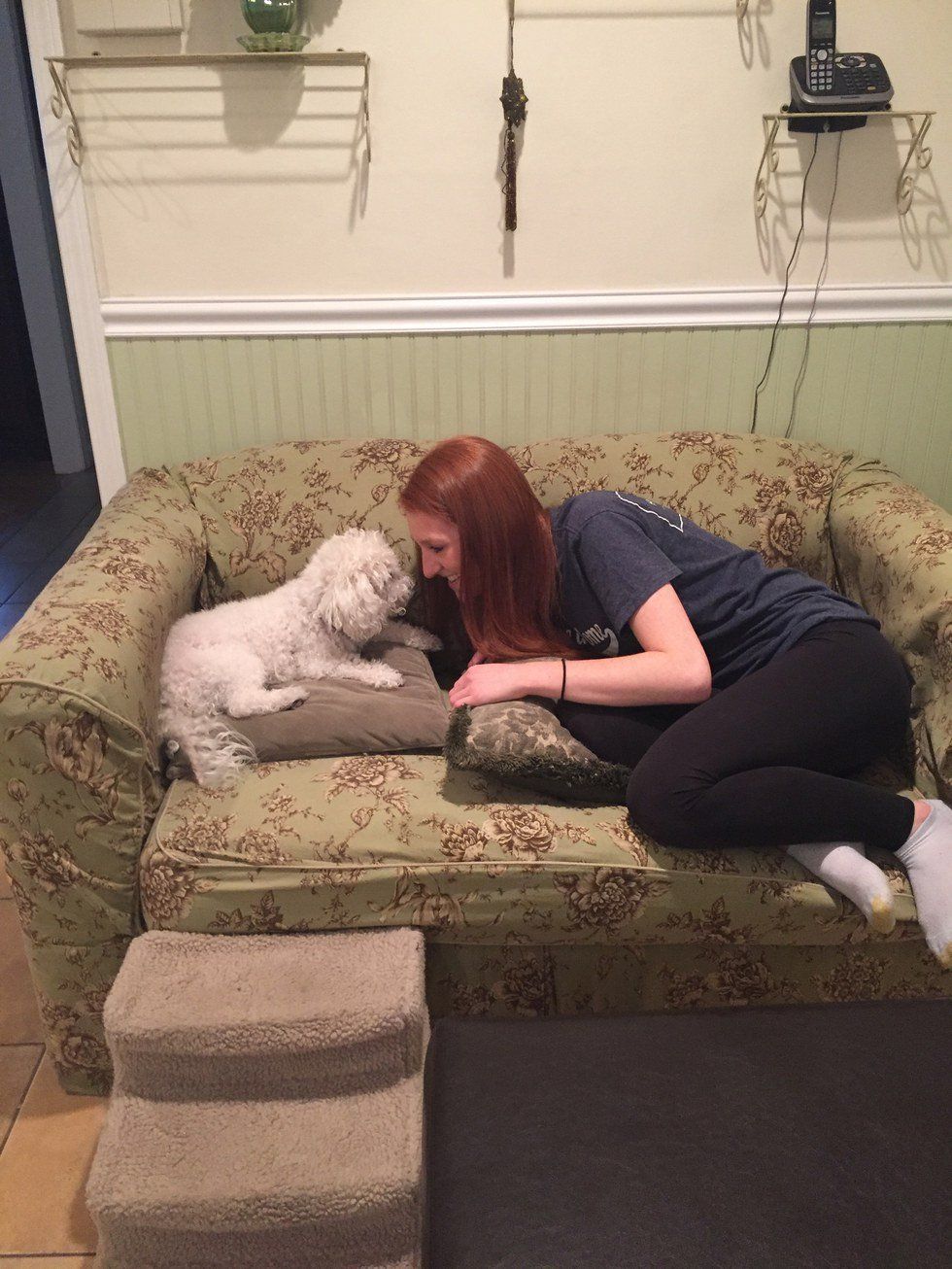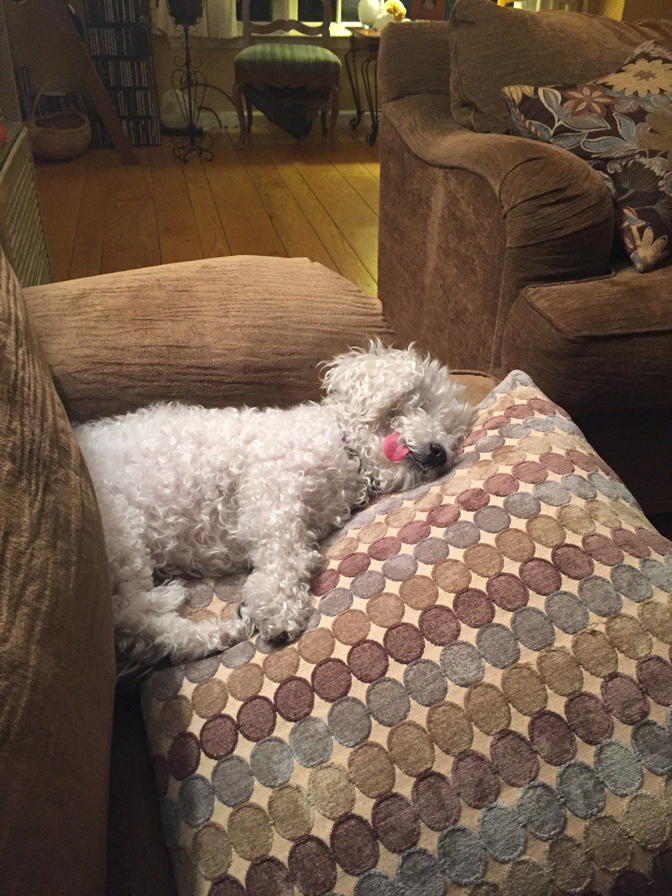 Not only were you our family dog, but you were family; a second sister. I watched you grow from the size of dad’s palm to your fully grown Bichon self. No matter what age you were, you always looked and acted like a puppy. In fact, you were often times mistaken for a puppy, even at age 16. Even when you got older and your hearing and vision started to go. Even when you started to get aches and pains in your legs, and the sleeping on the couch became a more regular past time. I believe that the doggy steps that helped you get on the couch is just about one of the best inventions out there.