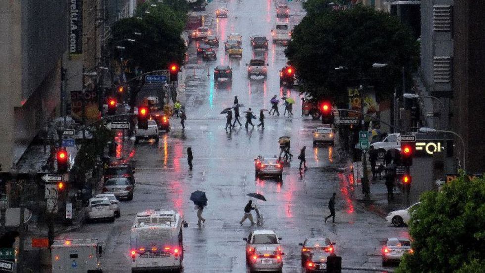 Another thing that should be noted: No one knows how to drive in the rain. Honestly, all you need is five minutes of heavy downpour and suddenly there are 10 accidents on the freeway. And now you're bringing in at least a week's worth of rain? We might as well start walking now!