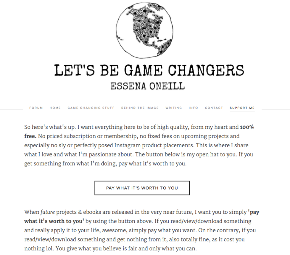 The donation page found on O'Neill's new blog requesting viewers to pay whatever he or she believes her message to be worth.