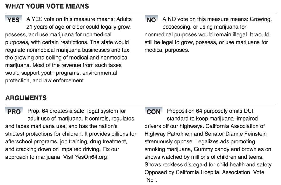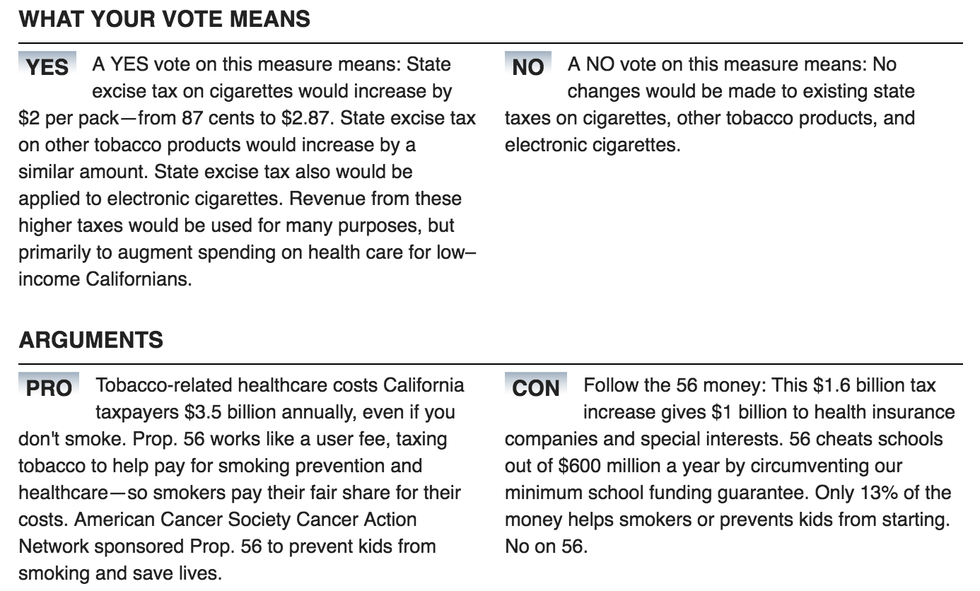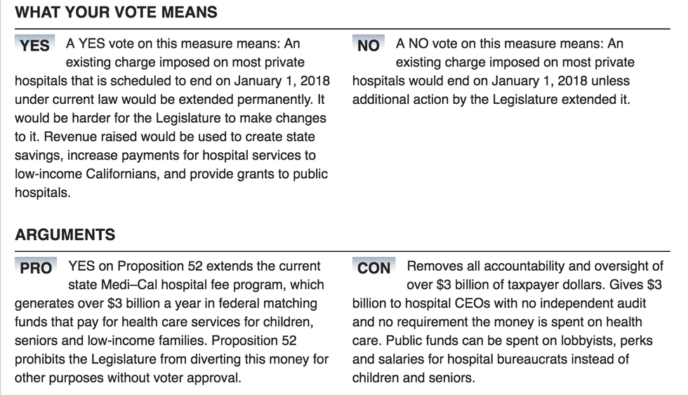 ~All of the following information was directly collected from the California Secretary of State: Official Voter Information Guide website linked below.~