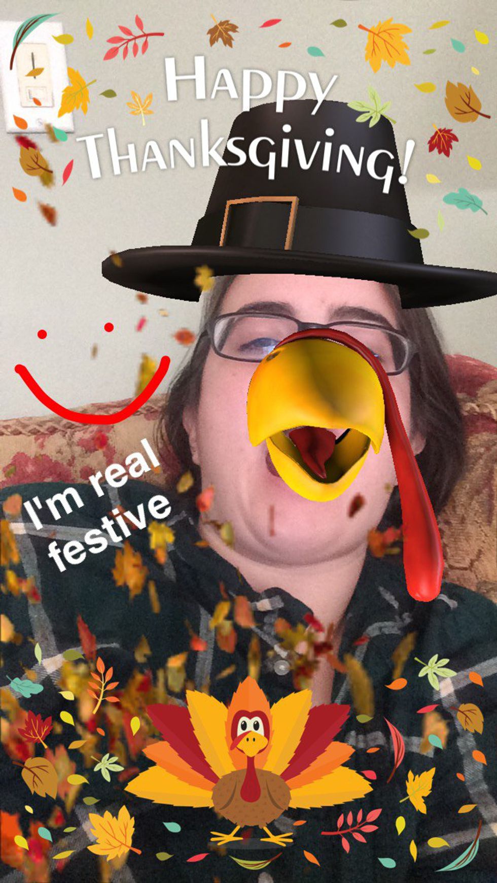 It was November 26, 2015. Thanksgiving Day. Snapchat had added a filter to turn your face into a turkey. What fun, I thought, for I was ready to celebrate the feast of a lifetime. What better way to kick off the holiday than to dress up as the very thing I would be later be devouring.