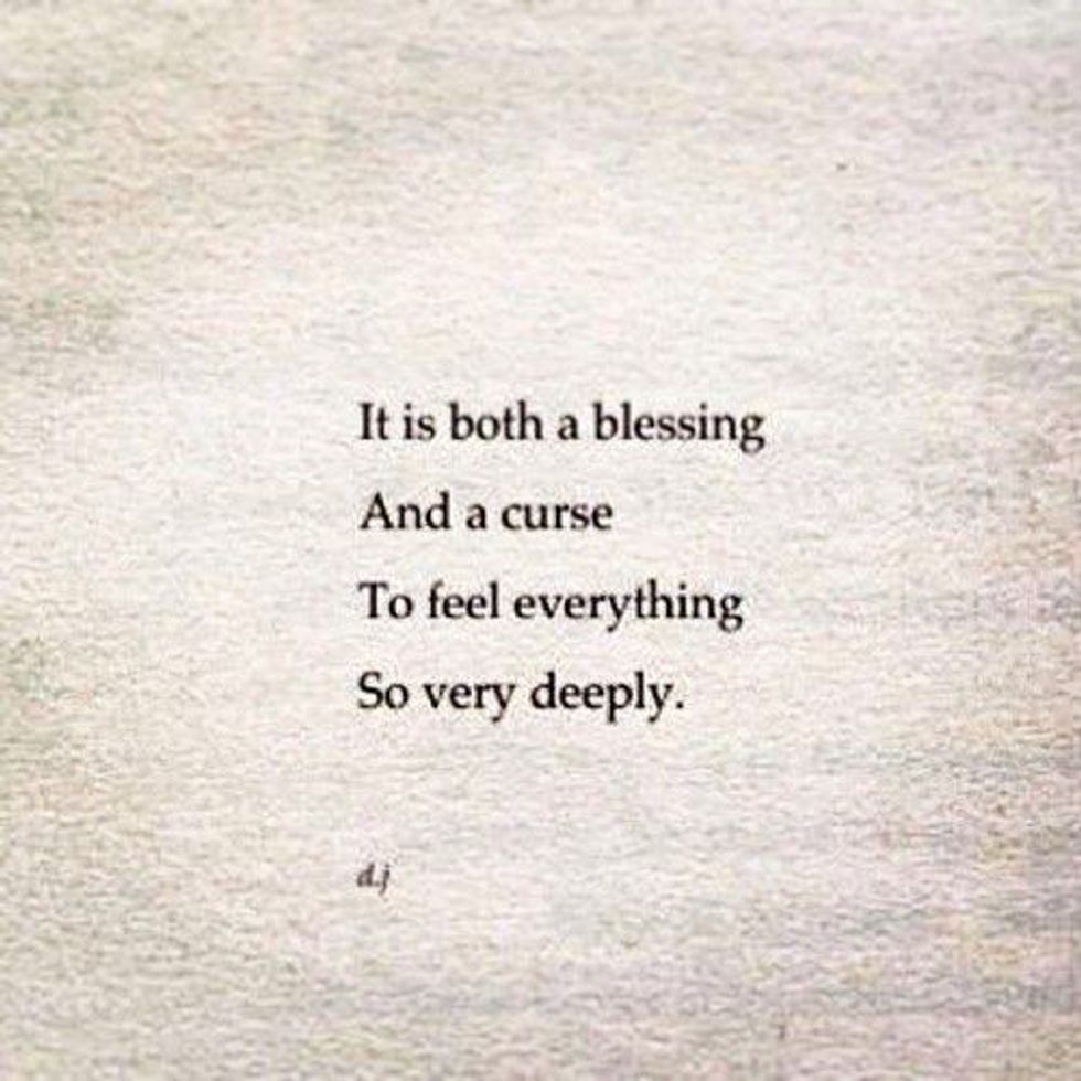 I didn't realize that other people don’t experience their emotions the same way I do, until I was in high school. It took a few catfights with other girls, name calling and a melodramatic breakup with a not-so-nice-guy, to make me realize this concept. A poet named David Jones once wrote,