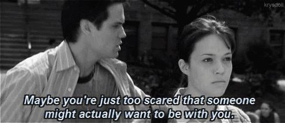 The hardest thing is to let someone in after you have been broken. You are scared that it is going to happen again, so it is easier to keep up your guard than to let that guy into your life. The scariest part of love is being open, and allowing him to see you at your best and at your worse without them taking advantage of your fragile heart.