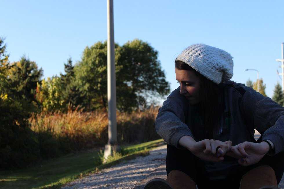 Her parents and friends start to notice that she’s been acting strange. Between isolation and the visible differences: long sleeves on nice days, light meals. They talk to her and she denies everything, hiding behind her blurry eyes. But they know.