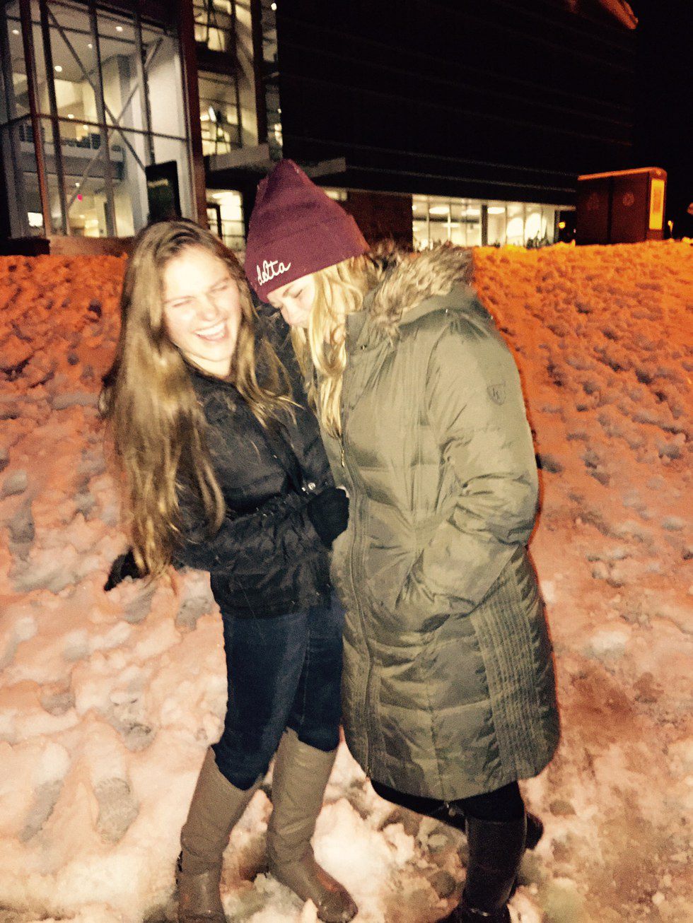 You woke me up for my 8 a.m.'s and brought me food when I was too tired to walk to the Union. You watched The Notebook with me that one time I was really sad, and you even went with me to get ice cream while I sported a onesie with cats on it. You took care of me when I was sick more times than I can count and always encouraged me to rally the next night. We threw the best dorm parties known to man, and you were always down to go sledding at midnight and then eat endless wings/fries after.