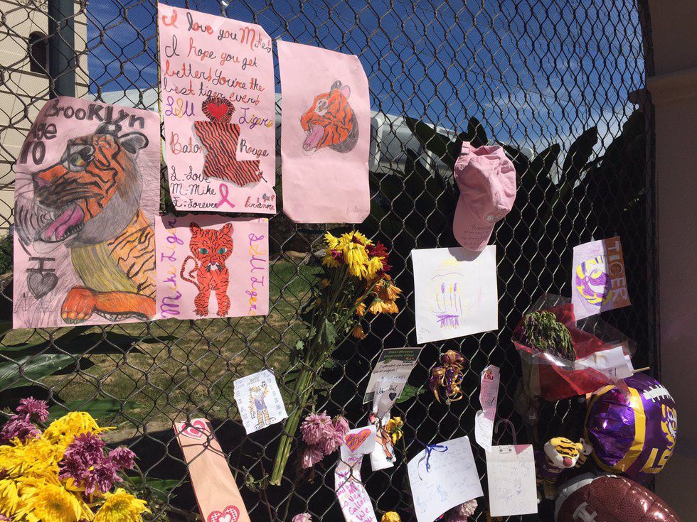But the last point that I really want to stress is that in your article you stated, "What do captive, caged tigers have to do with Louisiana State University (LSU) football? Oh, that's right: nothing." Well let me just say this: yes, a tiger does have nothing to do with football; however, if you have ever stepped foot on LSU's campus then you can't honestly tell me that Mike the Tiger has nothing to do with LSU's culture. Can you honestly say that you can't feel the pride and love that radiate off people when they talk about Mike? There's not a single thing a person could say that could convince me that Mike is not a part of LSU. Mike is just as crucial to this campus as the students are. Don't believe me? Just look at these pictures taken of Mike's habitat hours after LSU announced his death.