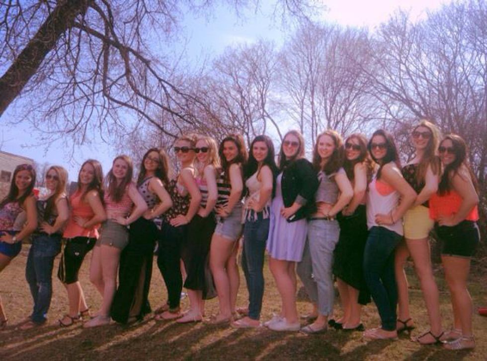 I had just fallen in love with an amazing group of women I couldn't wait to call my sisters, and now I was introduced to twelve other girls who were in the same boat as I was. I think back to the first day we were all together, some of us knew each other already some of us knew no one. Despite knowing we were all about to get to know each other, I don't think any of us expected to get as weirdly and greatly close as we all did. Twelve other girls who would become not only my sisters but truly my best friends. The thirteen of us are thirteen different individuals with our own personalities, minds, lives and hearts but I truly believe we were meant to cross paths: We were meant to be one.