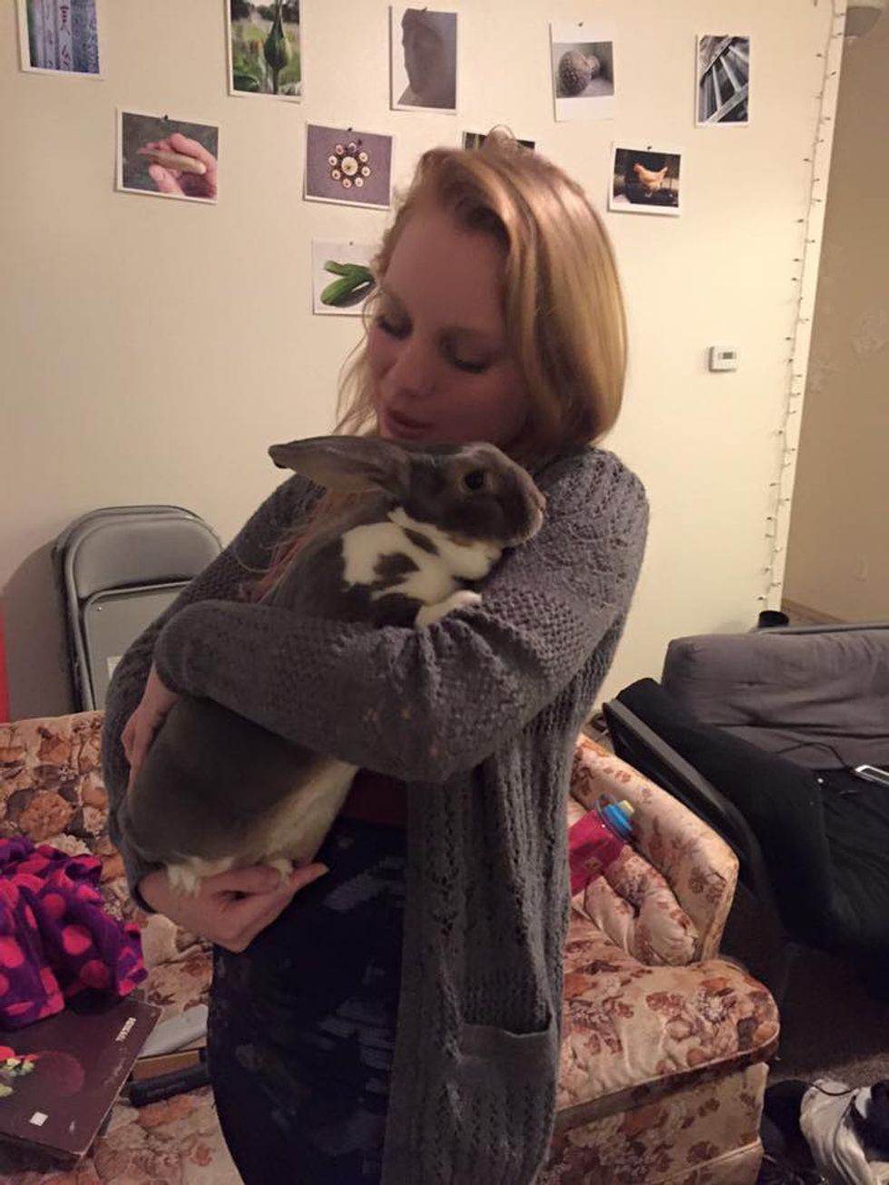 I wouldn't be lying if I said you were the softest thing I've ever felt. Like seriously, softer than velvet. Even though you scratch and stir, cuddling your tiny head and big body is very relaxing after a long day of classes. The subtle scrunching of your nose when you're trying to smell something familiar is too precious to even explain. You're adorable and entertaining. And in college, sometimes we just need a cute bunny to watch do simple things.