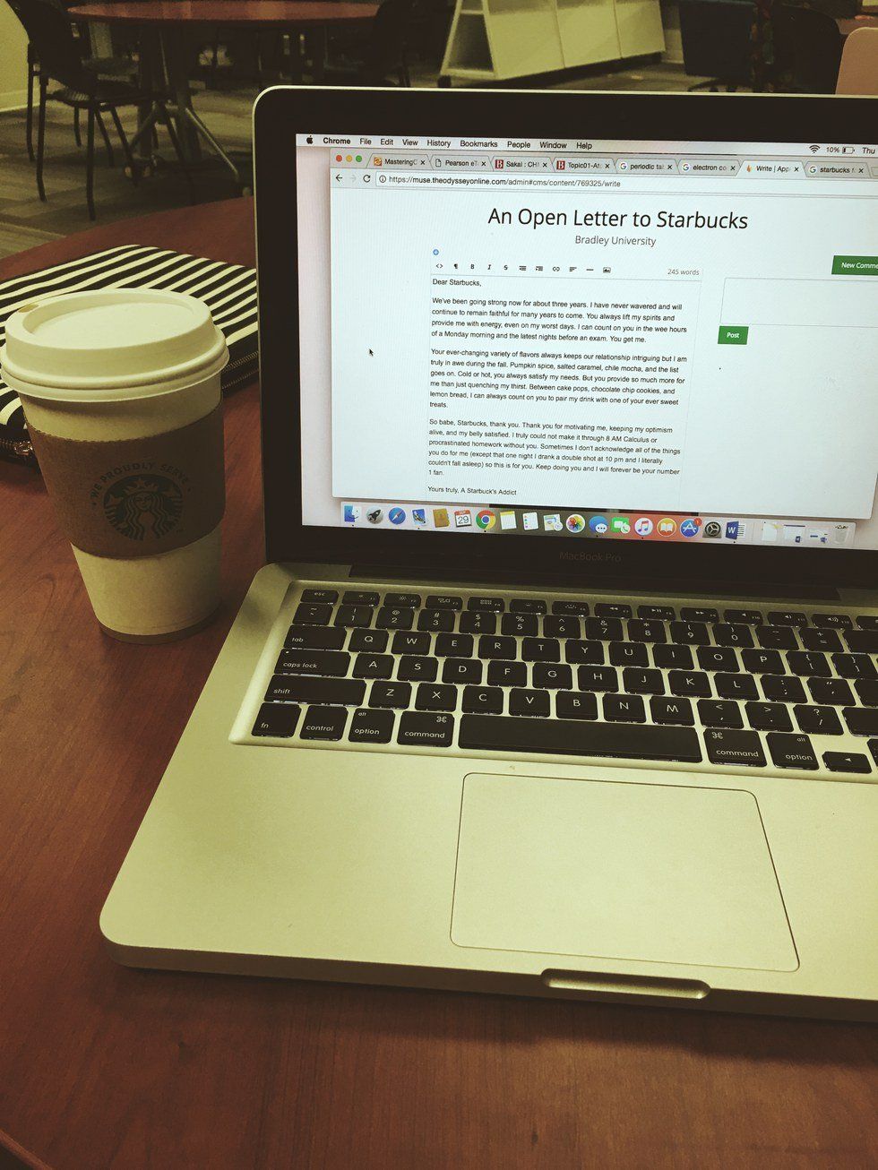 So babe, Starbucks, thank you. Thank you for motivating me, keeping my optimism alive, and my belly satisfied. I truly could not make it through 8 AM Calculus or procrastinated homework without you. Sometimes I don't acknowledge all of the things you do for me (except that one night I drank a double shot at 10 pm and I literally couldn't fall asleep) so this is for you. Keep doing you and I will forever be your number 1 fan.