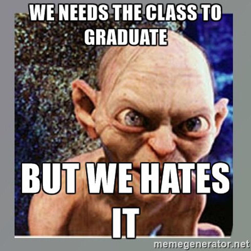 I'm sure there are others who enjoy you and love to attend your meetings, but then there are those who show up to class, listen to the professor, take notes and continuously wonder, "Why am I here?" I am a part of the latter group.