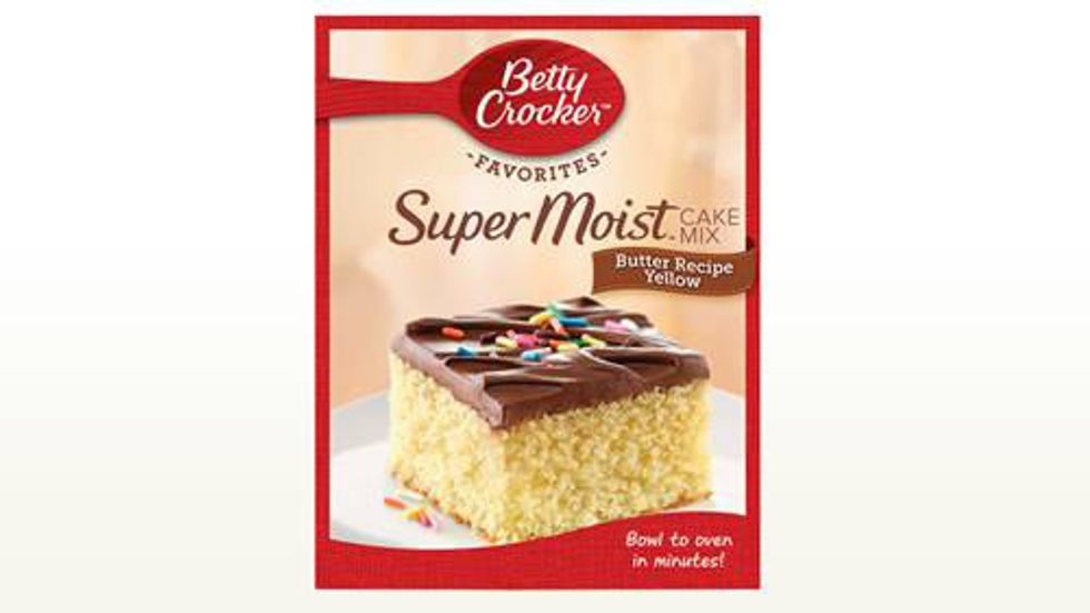 On the box, it tells you what you need. Eggs, water, vegetable oil. Mix it and you now have cake batter