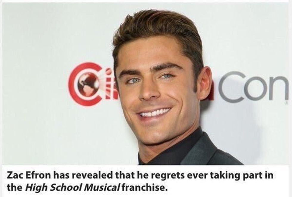 WTF Zac?! You regret doing High School Musical?!?!?!?! I mean I understand we all have times we would rather not discuss (for me it’s 2008-2012), but STILL. Those times shaped us to be who we are today. And personally, I would be more ashamed of this: