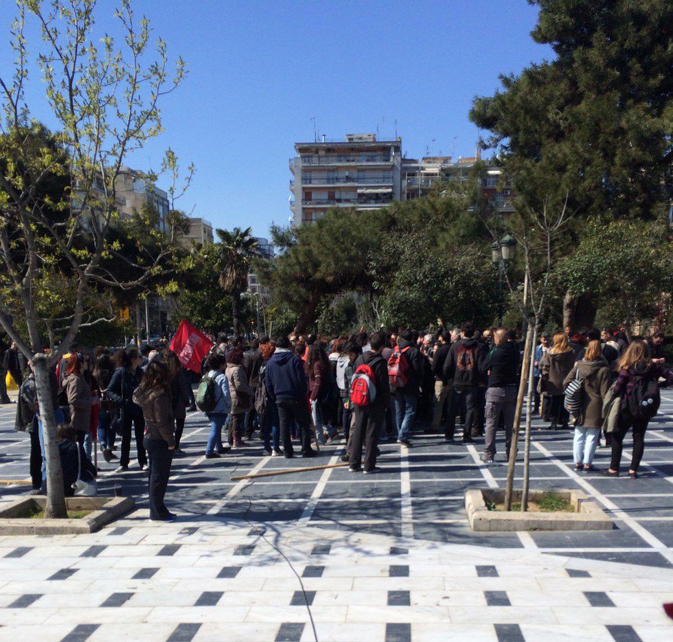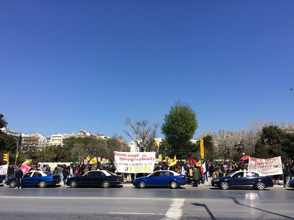 It was a protest demanding the borders be opened. Currently, about 2,000 refugees are stuck in Thessaloniki, Greece and are living in refugee camps. The borders are closed and they have nowhere to go. The group of students I'm with decided to venture into the protest.
