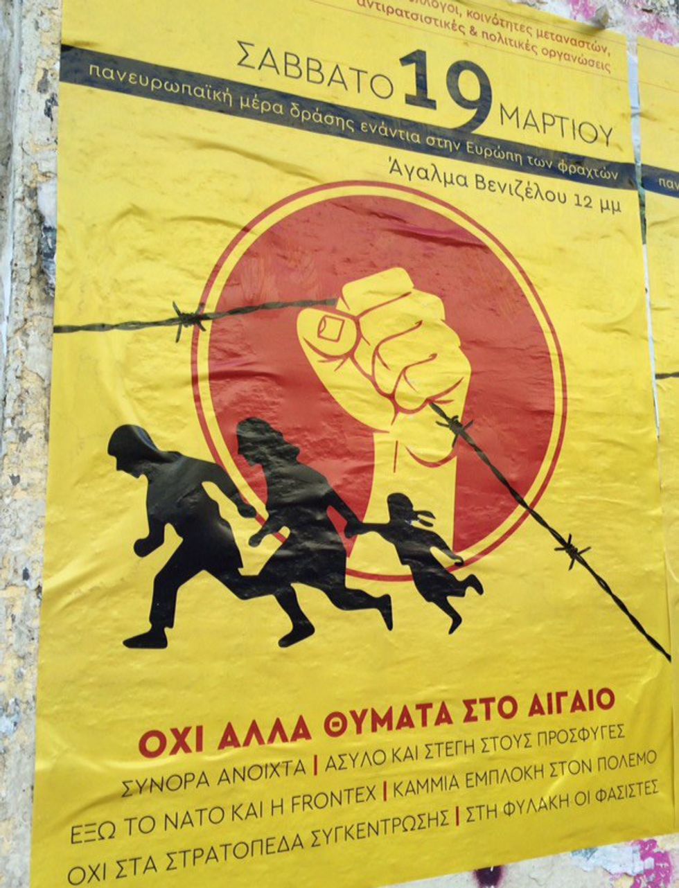 Later, I saw posters all around the city for the protest. I really liked the graphic because it's so telling of the situation. It was unfortunate to see so many young refugees protesting instead of being in school or having the chance to make something of themselves. I had gone to a "refugee hangout" and food kitchen the night before for an interview with a lawyer that helps refugees get asylum and realized that the refugees live in the present in order to survive. You don't really realize how widespread the refugee crisis is until you are in a country deeply affected by it. I learned that protests were held all over the European Union on March 19th, the day I was at this protest in Greece. The lives of many are impacted by this global issue. What I learned from this protest is that refugees are looking to the world to stand in solidarity with them and not to forget that they are people trying to survive, too.