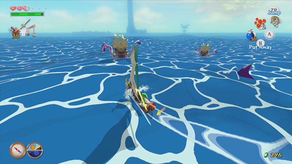 This made me think, amidst all the new games coming out claiming to be putting out maps roughly the size of the observable universe, that open world games don't need to and possibly even shouldn't, be that size. "Fallout 3" manages to create a game world that gives the impression of large distances without actual large distances giving the player a sense of consistent exploration. "The Legend of Zelda: Wind Waker" also accomplishes this same effect as the world manages to feel like a huge ocean, it's closer to a large lake than anything else. Yet, in "Wind Waker," traveling the ocean feels like a journey--you feel as though you've crossed an ocean when you travel from Windfall Island to Outset Island.