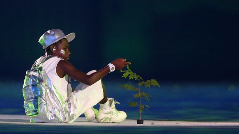 One of the major themes was the environment. It is clear that it is vital to the Brazilian life. They also had a segment about global warming and what it does to the environment. I am so glad they spoke on this topic and they are doing something to combat it! The athletes are planting a seedling; 11,000 seeds in all! This will be known as the Athletes Forest. This will be Rio's legacy.