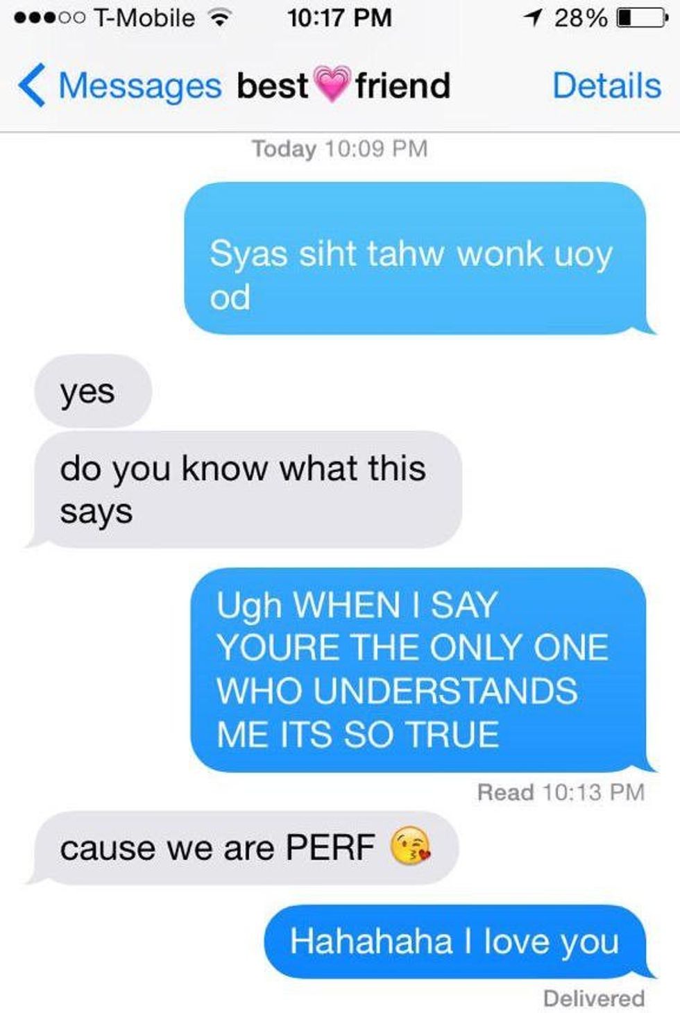High school is definitely not for the weak, however, you somehow handle drama like a professional. Whenever I got upset about some petty drama, you always had a way of making me see how dumb it was because that person and that drama were unimportant in my life, and you were already planning your attack for revenge on the person that made me upset. It is hard to find loyal friends nowadays, but you are by far the most loyal person I know. If someone in Iowa was ever doing something to hurt me, I know that you would be here in a heartbeat to kick some butt or at least to start a Twitter fight. I know that you would do absolutely anything for me and always have my back, and I can't say that about very many people.Thank you for creating so many memories with me. I wish I could share all of them, but most would either get us in trouble or was probably illegal. The best thing about you was that you were always my partner in crime.