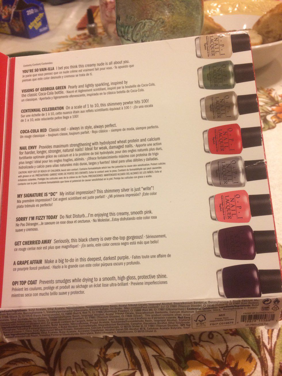 So, for an honest review, I will start out with the fact that I am obsessed with the Coca-Cola Red. I used it for a holiday type color and it just covers very well. Get Cherried Away is a very nice shade of purple and I am excited to begin using it. A Grape Affair and Sorry in Fizzy Today are okay colors that I will end up using eventually. The So Vain-illa and Centennial Celebration are not my favorite colors. They call it a creamy nude, but that just is not my shade because I am practically the same color as it and the shimmer just is not shimmery enough.