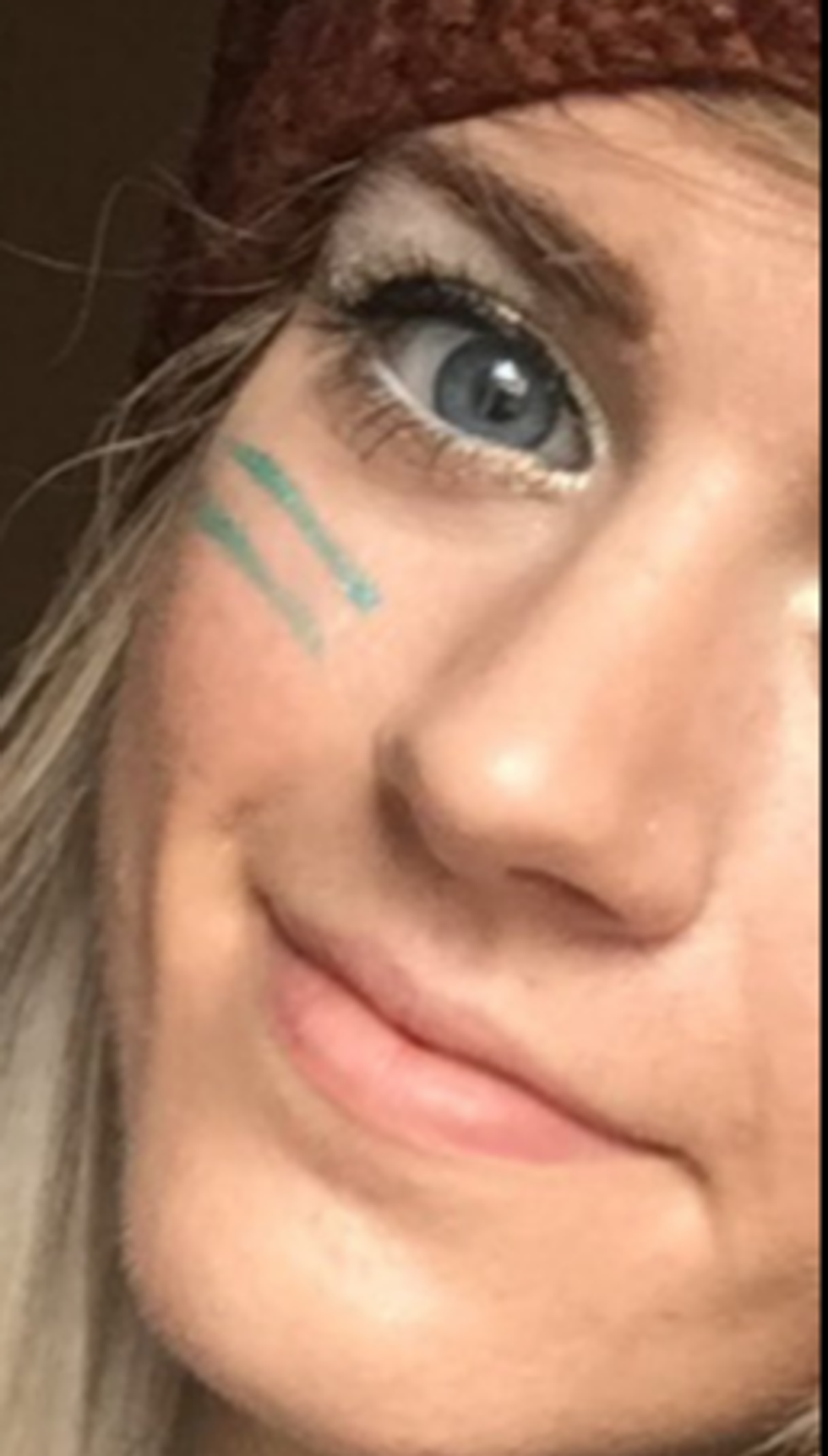 In other videos she has also had bruises on her legs, possible chains on her ankles and her boyfriend had markings on his knuckles (possibly from hitting her). Others have posted pictures of her live feed saying their are strange people filming her. People have also claimed that she would often draw two blue lines on her face. Two blue lines can represent that you are in danger and need help.