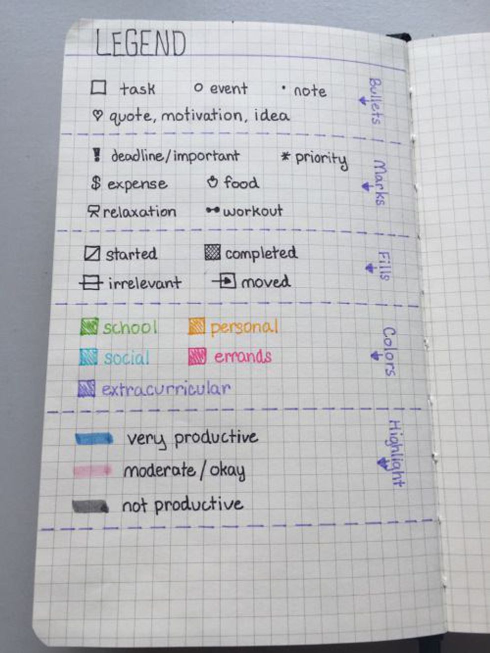 Creating a legend for your planner, like the example above, helps prevent your daily plan from looking cluttered and overwhelming.