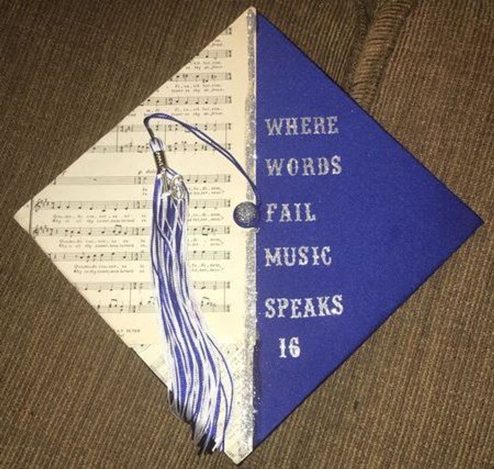 Music and theater majors can have so many different ideas, their creativity never ends, which means their graduation caps are the best part of the whole show!