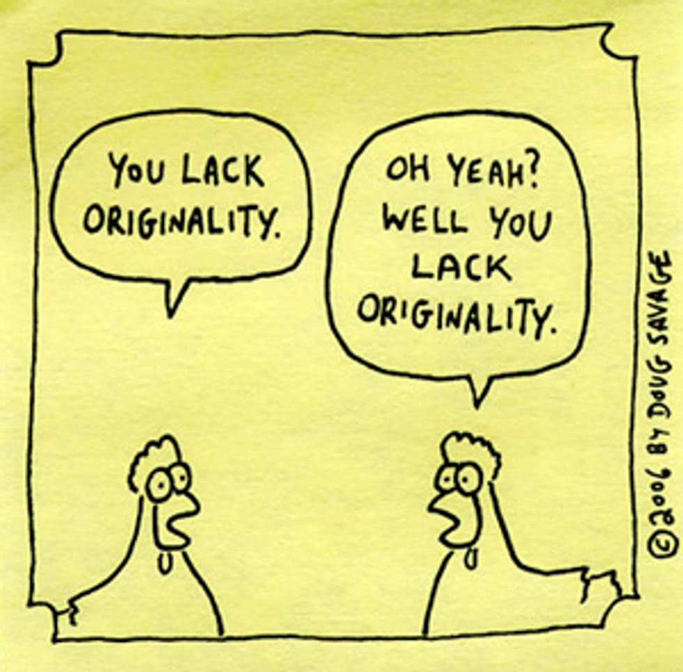 One definition of the word "original" is "something serving as a model or basis for imitations or copies." I find this comical because, well, if you think about it, everything is based on something else. Our own thoughts lack originality because they are influenced by preexisting ideas that we cannot choose to mentally ignore. It is inevitable, my friends.