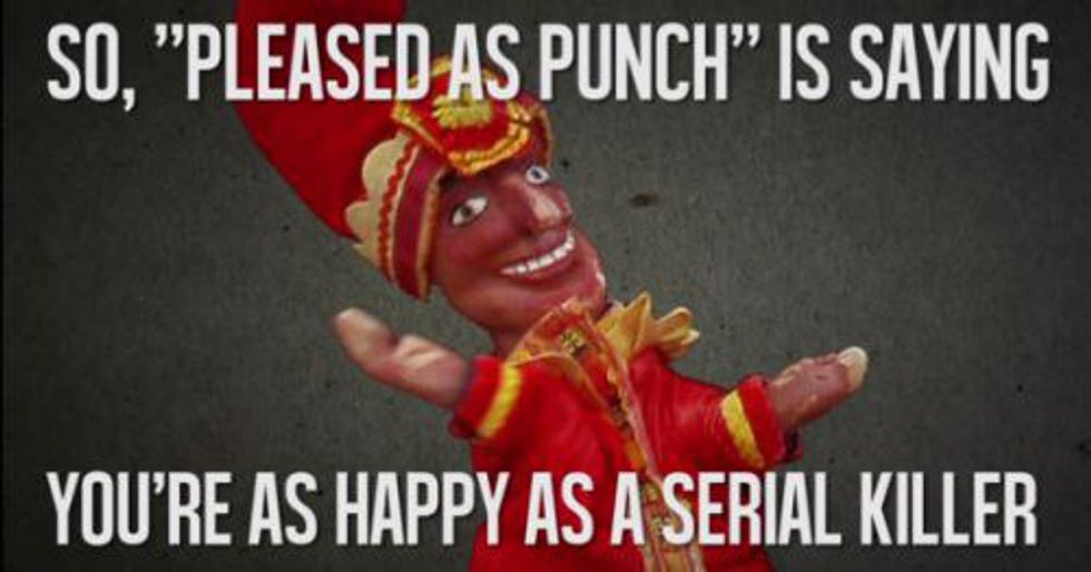 Commedia dell'arte, an Italian play in the 16th century featured a puppet named Punchinello and his wife Judy. The play became very popular in Britain until its decline in the 20th century due to its political incorrectness. Punch, just so happened to take pleasure in two things during the play: beating his wife and murder. Punch took great pleasure in his actions and often called out “That’s the way to do it!” Throughout its time in Britain the show did change, however, it did not stray too far as Punch’s abusive and murderous ways remained the same. The first recorded use of the popular phrase was in 1797, by William Gifford in his series "The Baviad," and "Maeviad," with the line “Oh! how my fingers itch to pull thy nose! As pleased as Punch, I'd hold it in my gripe.” The phrase caught more popularity as Charles Dickens used “pleased as Punch” and “as proud as Punch” interchangeably. In his novel "David Copperfield" (1850), he wrote “I am as proud as Punch to think that I once had the honor of being connected with your family.” He used the more popular version in his novel "Hard Times" (1854), writing, “When Sissy got into the school here . . . her father was as pleased as Punch.”