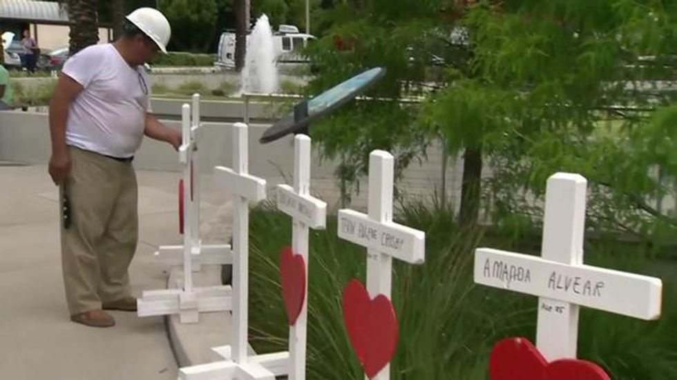 A man from Chicago made a wooden cross with the name of each victim from the Orlando shooting, and drove them all the way to Florida, bringing the message "love your neighbor, love your brother."