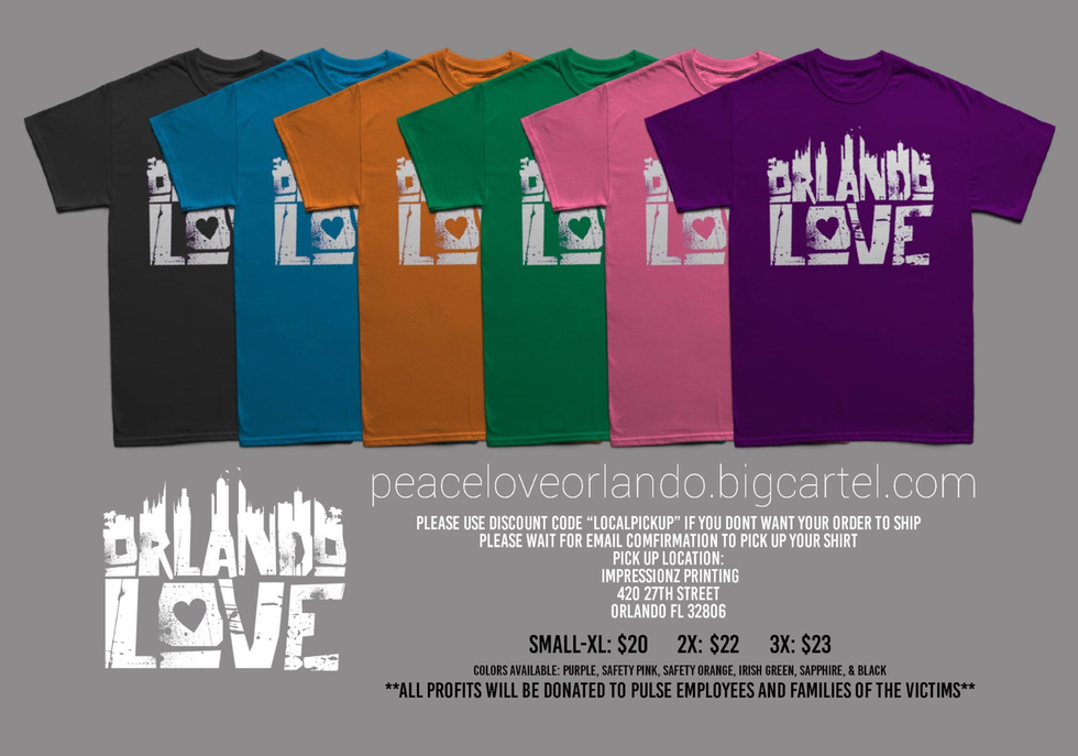 Orlando graphic designer, Katie Constantino, designed these shirts and all profits will be donated to Pulse employees and families of the victims