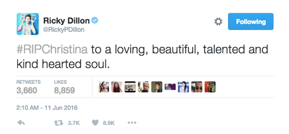 I immediately turned to Twitter, and there was a large outpouring of affection for Christina and her family from fans, social media stars, and celebrities alike.