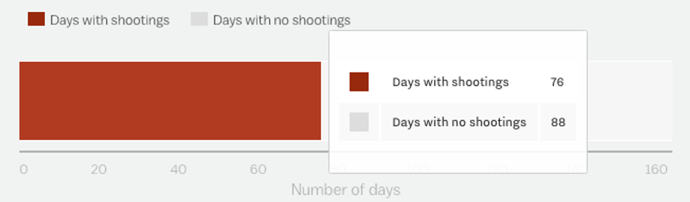 The Gun Violence Archive wrote, "There have been 76 days with mass shootings in 2016 -- and 88 without."