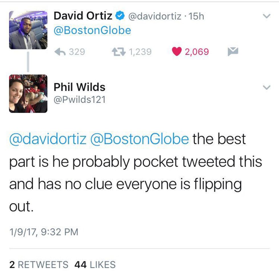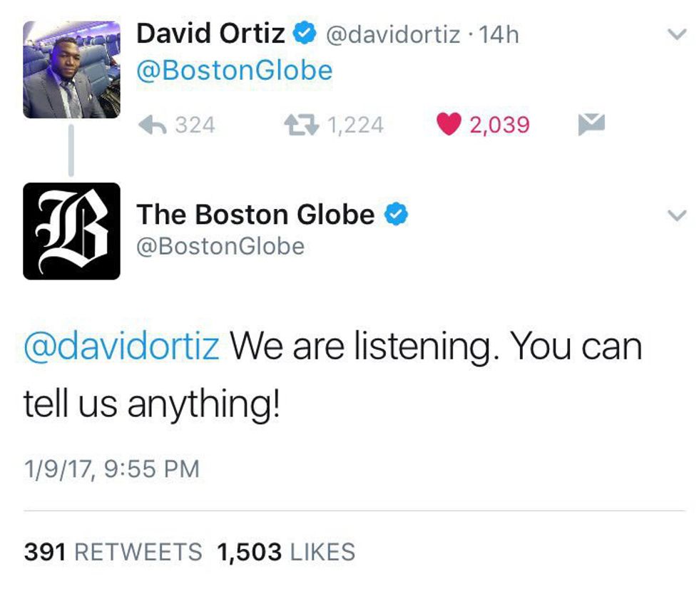 Who really knows what Ortiz meant when he sent out the tweet. Realistically thinking, he probably has no idea it even happened. He could have accidently sent out a draft, or was searching for the Boston Globe in what he presumed was the search bar, but ended up tweeting the masses instead.