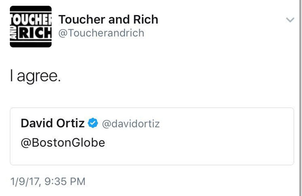 The sports radio morning show Toucher and Rich out of Boston agreed with the tweet. Agreed to what exactly, who knows.