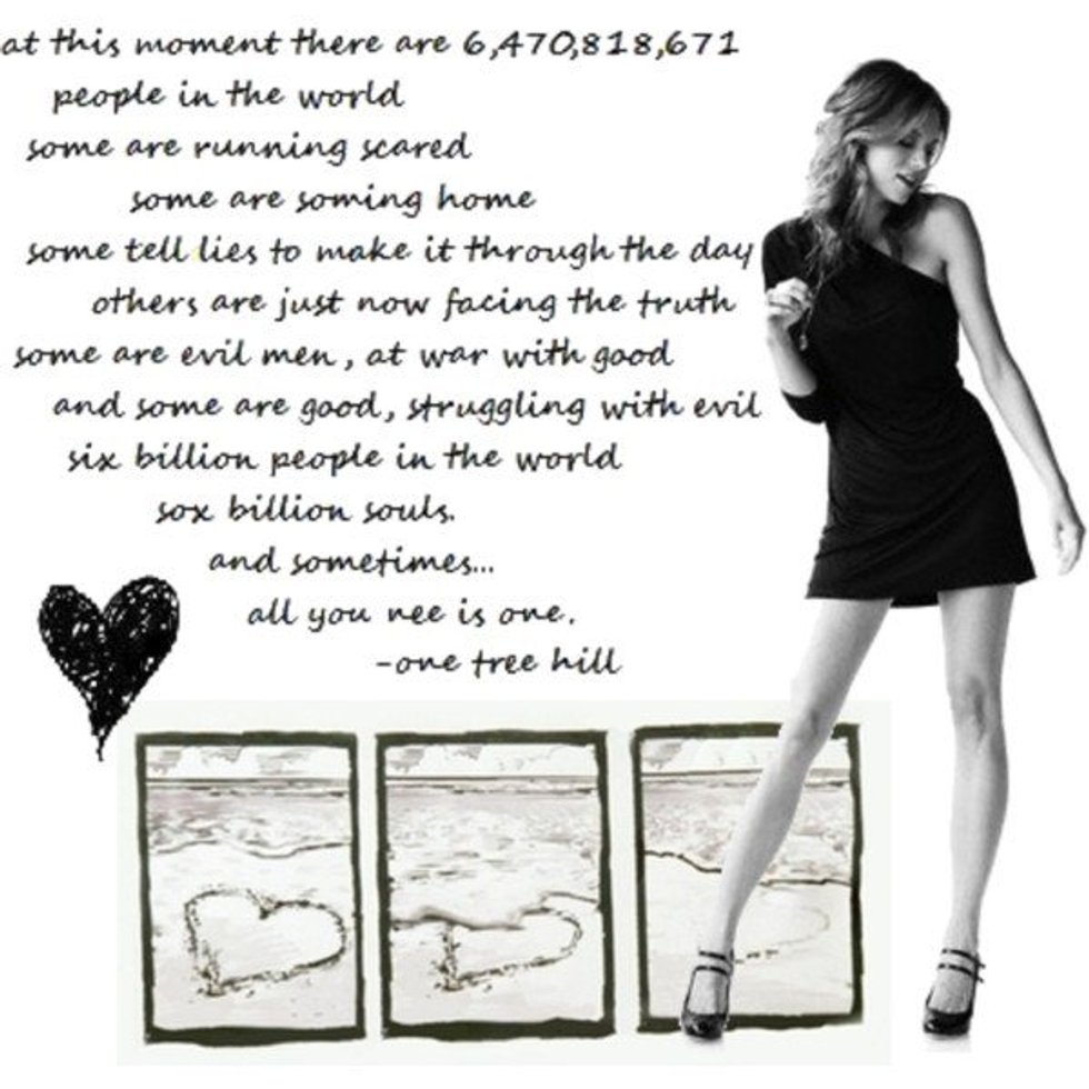 "At this moment, there are 6,470,818,671 people in the world. Some are running scarred, some are coming home. Some tell lies to make it through the day. Others are just now facing the truth. Some are evil men at war with good. And some are good struggling with evil. Sic billion souls, and sometimes all you need is one."