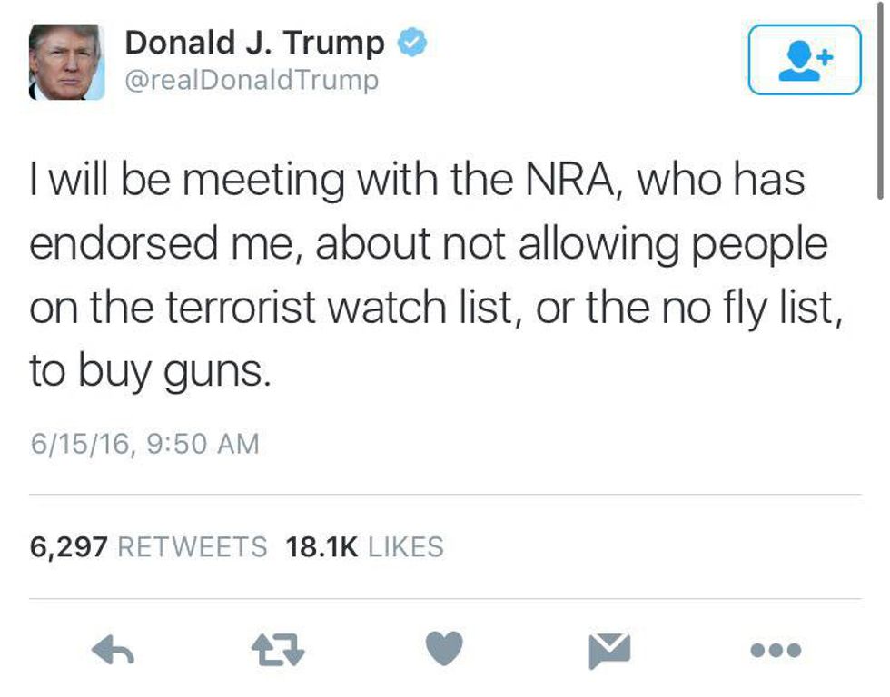 Mirroring President Obama's own proposal to push for an implementation of a preventive measure that would bar those placed on the terrorist watch-list (or no-fly list) from purchasing firearms, presumptive Republican nominee, Donald Trump issued a statement to that same effect on Wednesday.