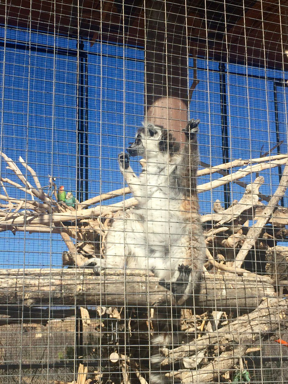 While waiting for the tram to take you to the top of the park, you're greeted by a few wild cats and an enclosure with a lemurs, turkeys and birds. What I thought was especially cool was that the lemurs were active and were peeling and eating bananas.