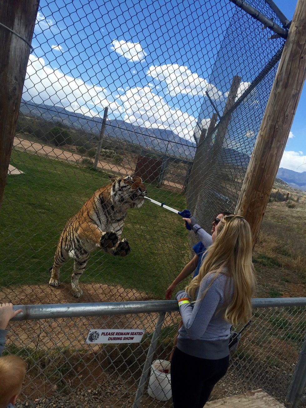 Here you can get up close and personal with the animals. The only thing standing between you and Hunter the tiger is a chain link fence.